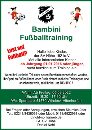 Nächstes Training Freitag, 28.04.23, 16.30 bis 17.30 Uhr, Sportplatz in Altenherfen!